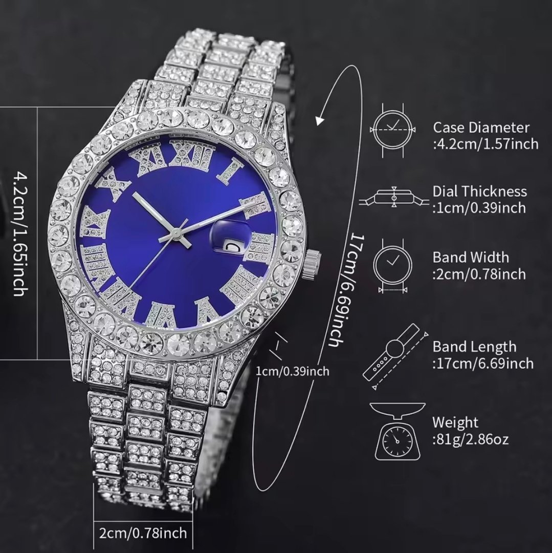 2PCS/Set Hip Hop Men’s Watch Fashion Diamond Stainless Steel