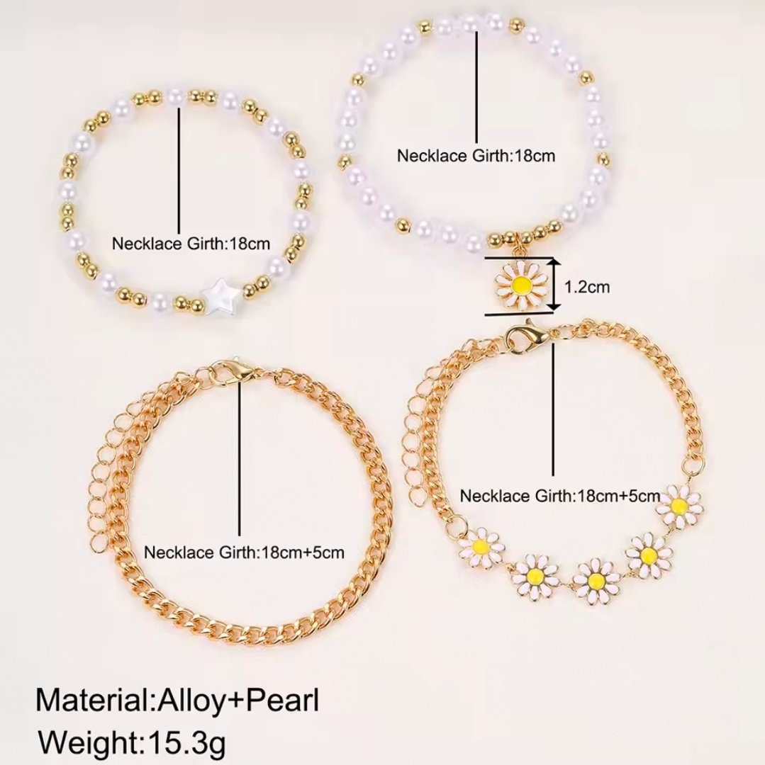 5pcs Set Of Creative Pentagram Daisy Pearl String Bracelet Watch