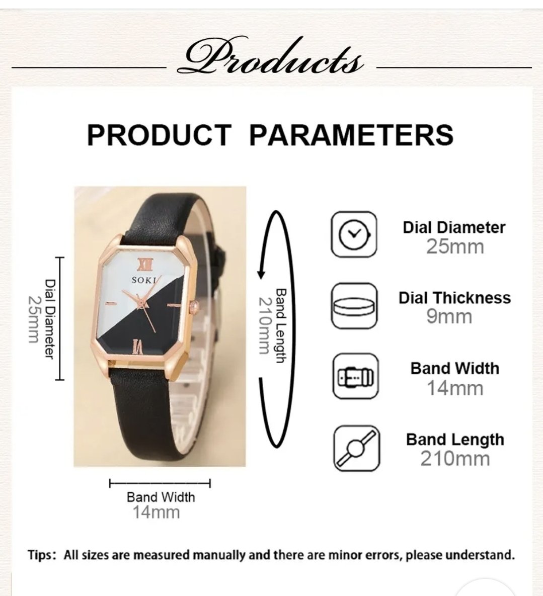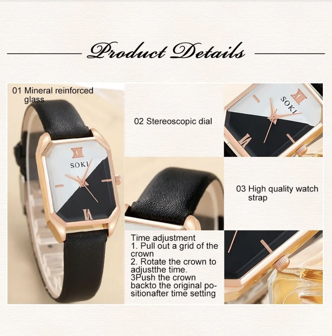 • Quartz Movement :The SOKI watch set features a quartz movement, ensuring precise timekeeping and long-lasting performance.